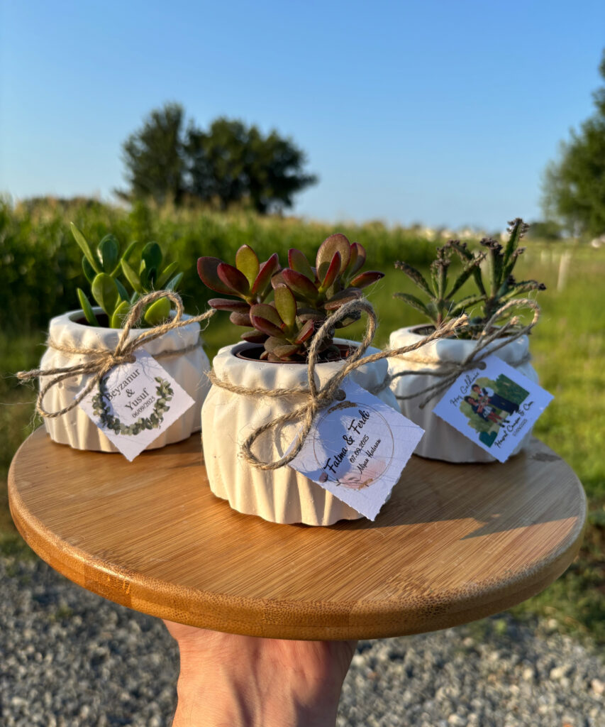 Yuvarlak Çanta Süslemeli Sukulent (Karma Desenli)