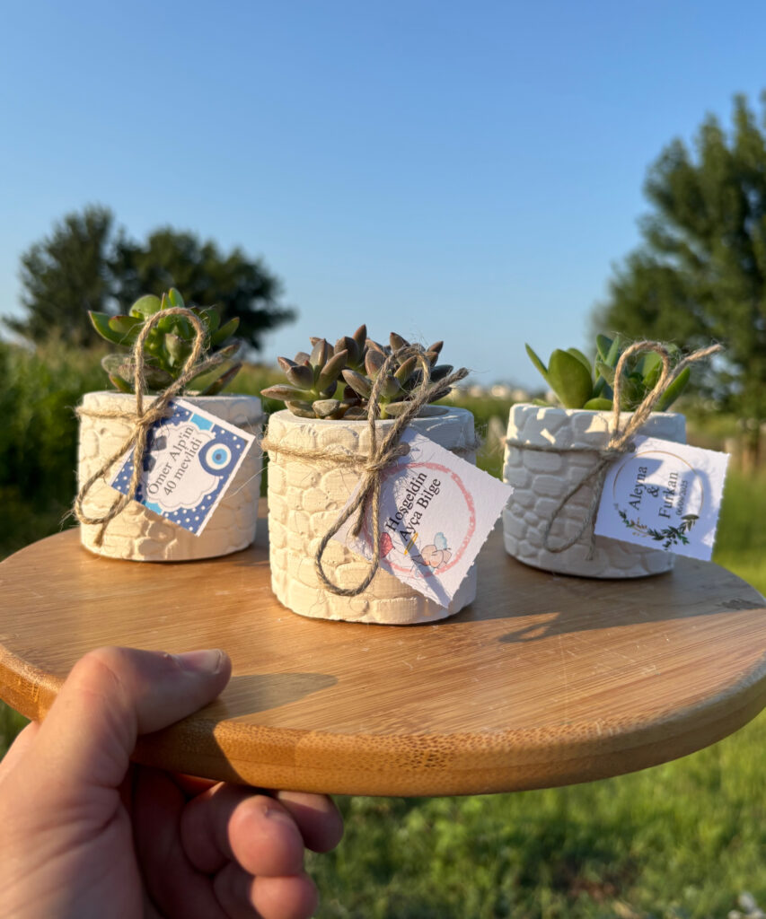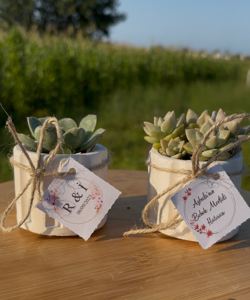 Gül Desenli Beyaz Külah Kap Süslemeli Sukulent