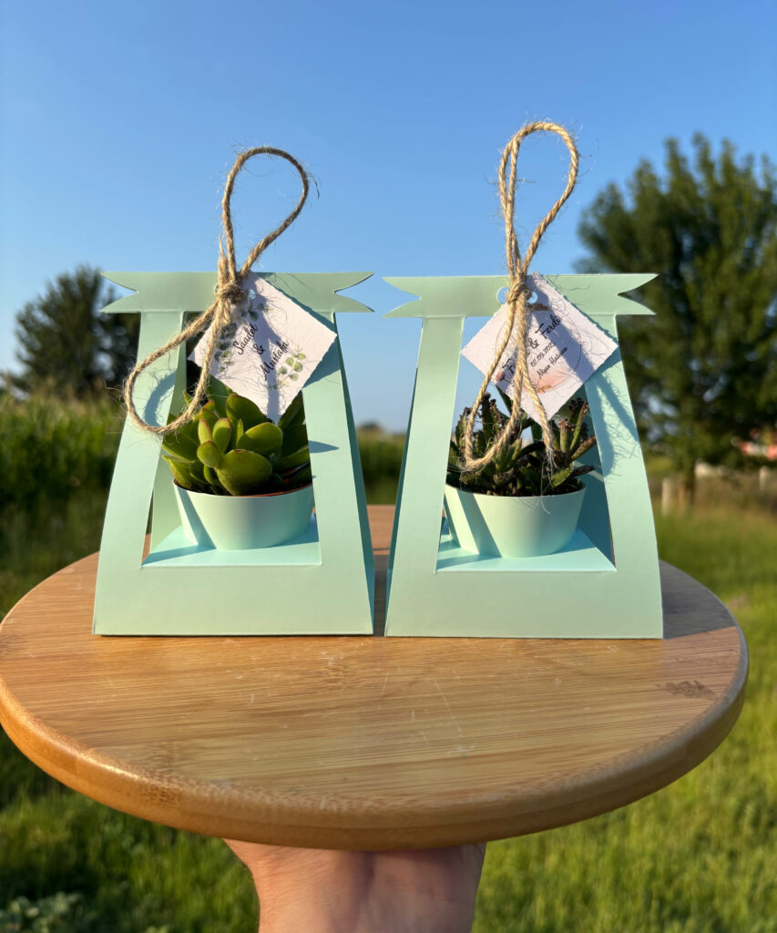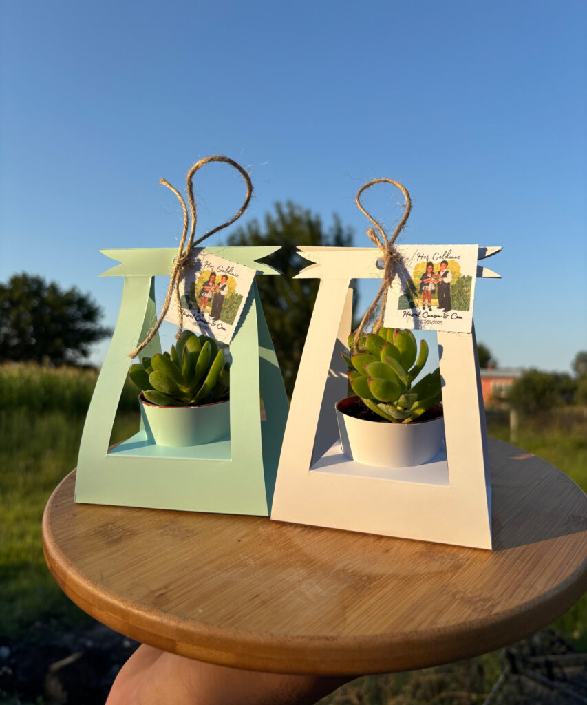 Kare Çanta (Kraft) Süslemeli Sukulent