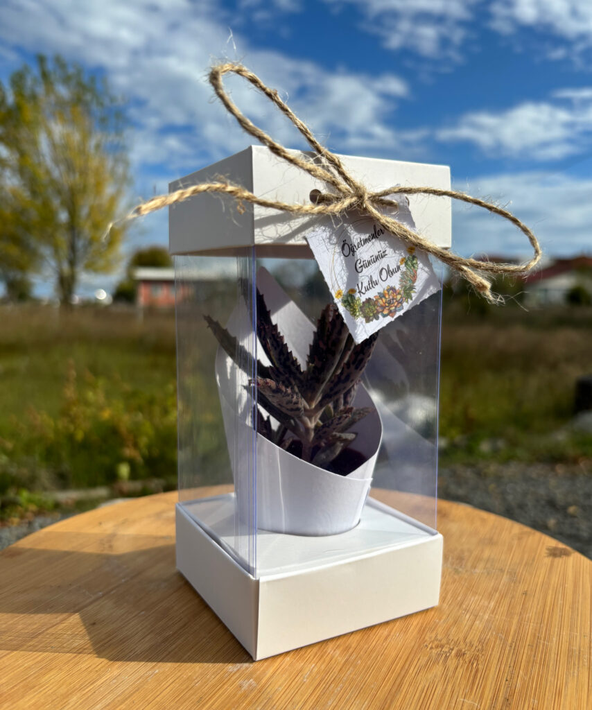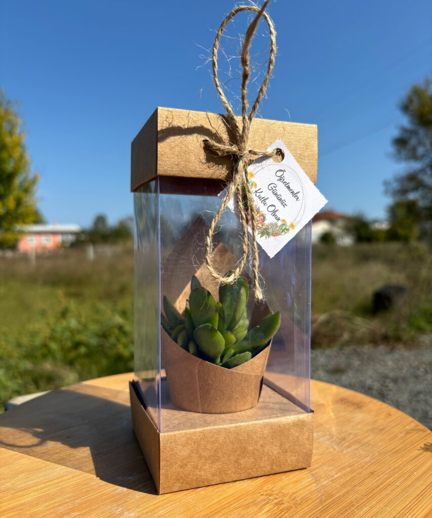 (KAK)-Öğretmenler Günü Özel Asetat Kutulu(Kraft) Hediyelik Sukulent