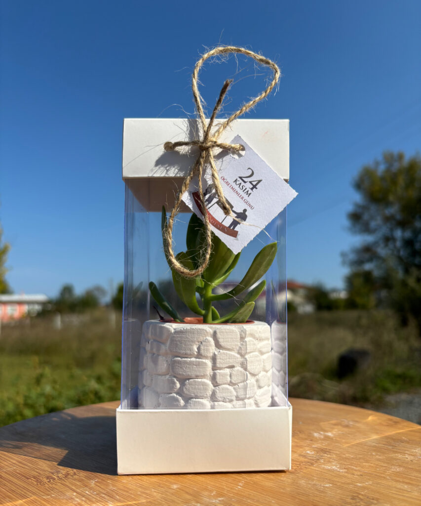 (KA2)-Öğretmenler Günü Özel Kraft Asetat Kutulu + Beton(2) Saksılı Hediyelik