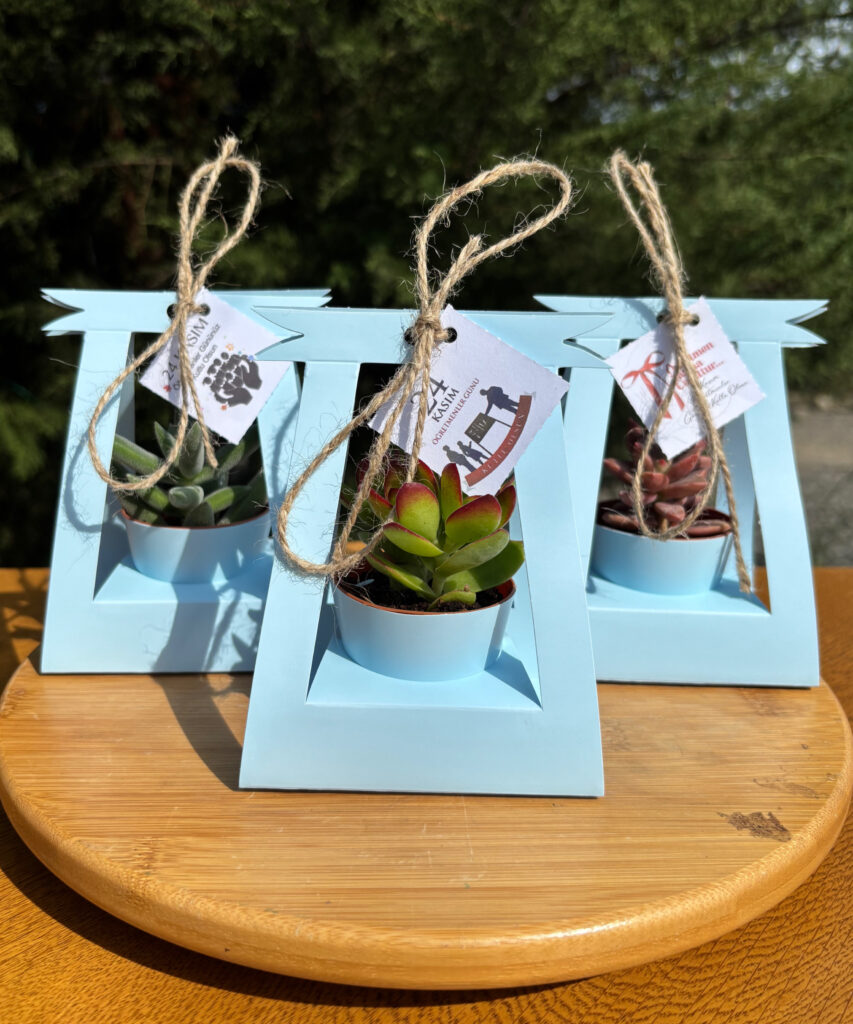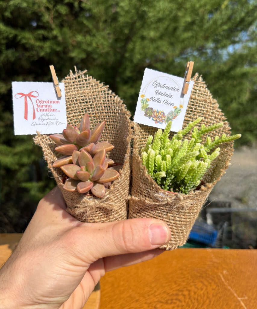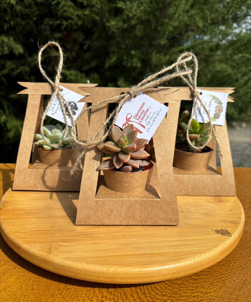 Öğretmenler Günü Özel Hasır Süslemeli Sukulent