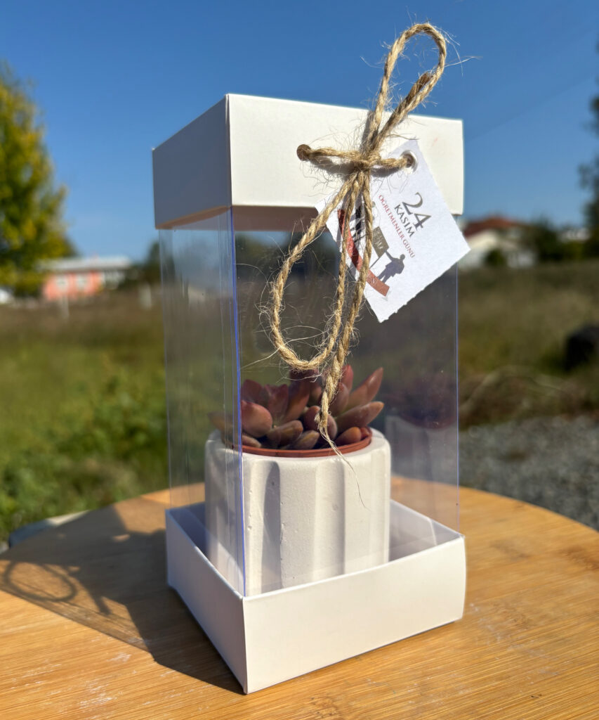 (BA2)-Öğretmenler Günü Özel Beyaz Asetat Kutulu + Beton(2) Saksılı Hediyelik