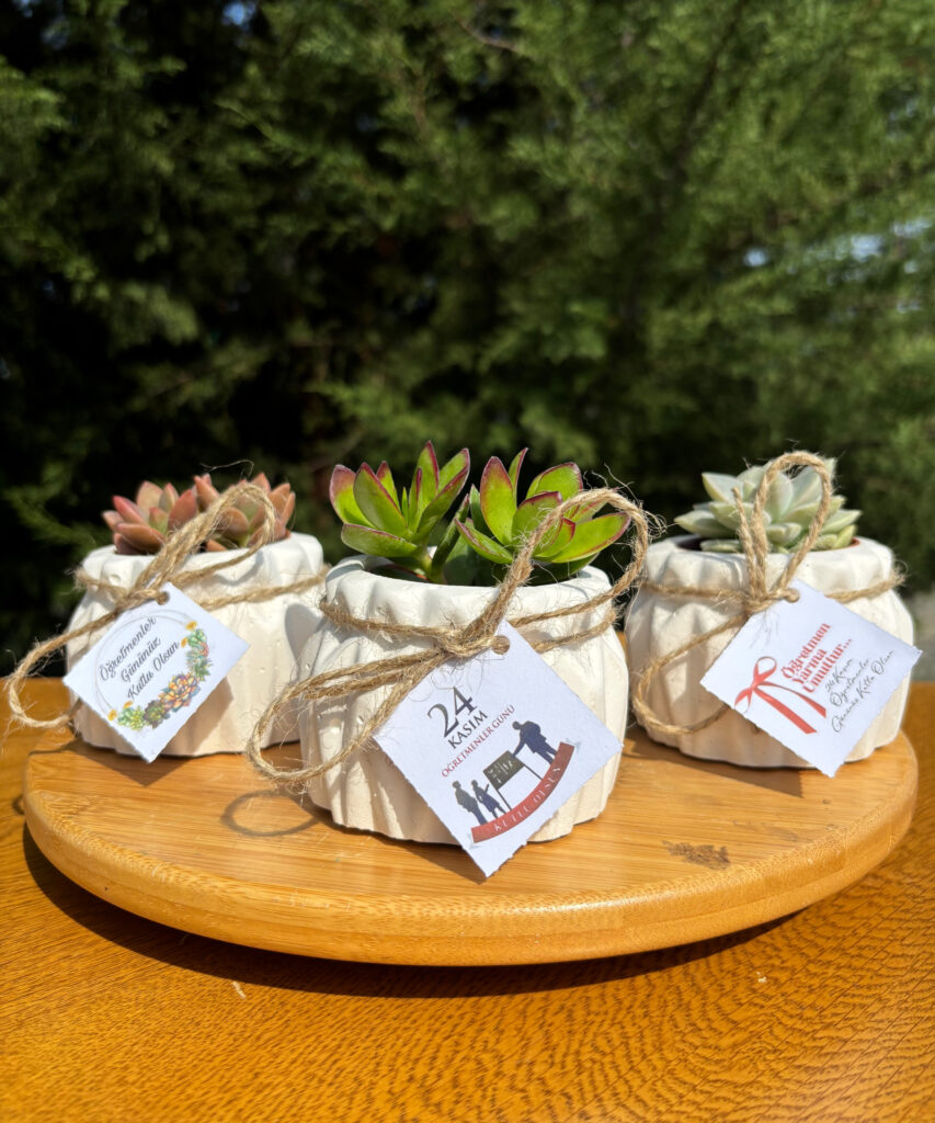 Öğretmenler Günü Özel Beton(1) Saksılı Hediyelik Sukulent