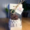 (BA1)-Anneler Günü Özel Beyaz Asetat Kutulu+Beton(1) Saksılı Hediyelik Sukulent