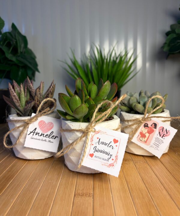 Anneler Günü Özel Beton(4) Saksılı Hediyelik Sukulent