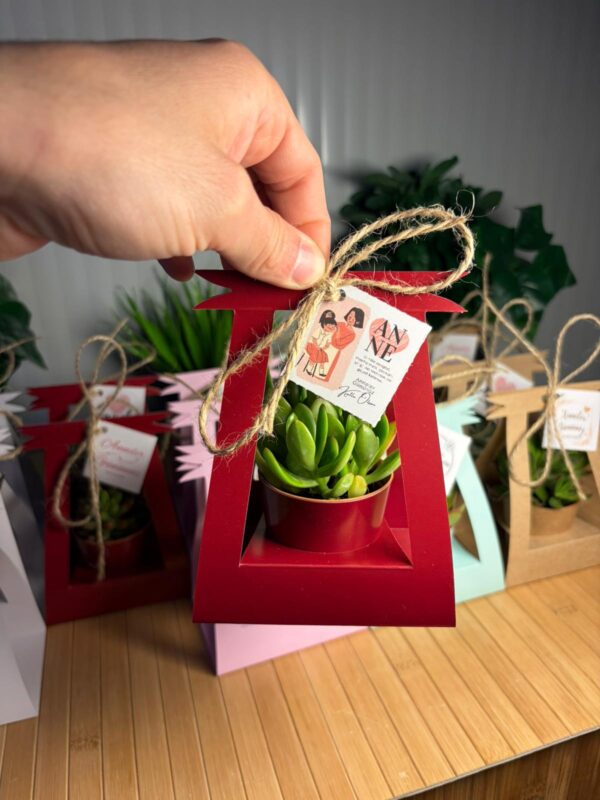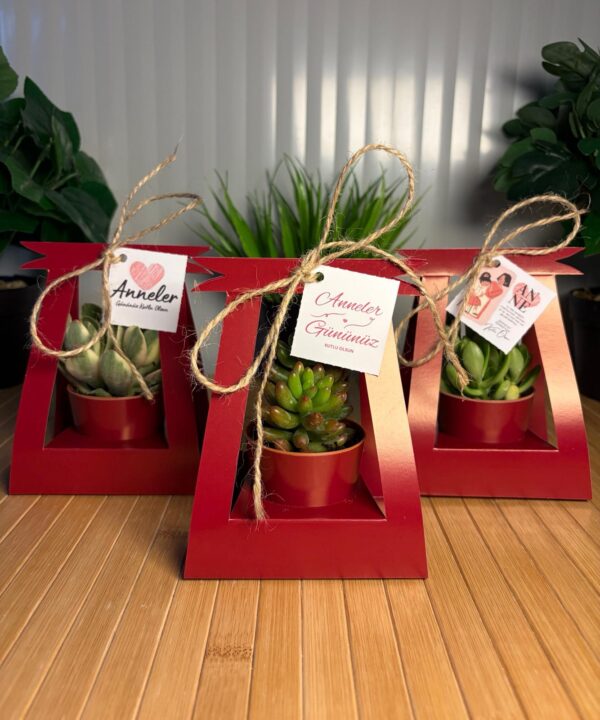 Anneler Günü Özel Kare Çanta (Bordo Renk) Süslemeli Sukulent