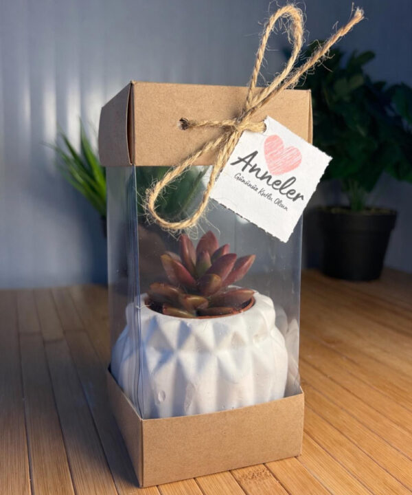 (KA1)-Anneler Günü Özel Kraft Asetat Kutulu+Beton(1) Saksılı Hediyelik Sukulent