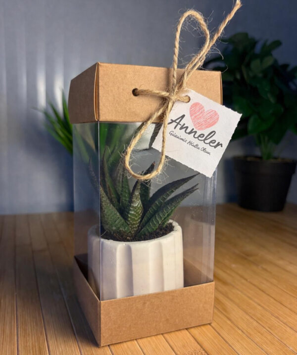 (KA3)-Anneler Günü Özel Kraft Asetat Kutulu+Beton(3) Saksılı Hediyelik Sukulent