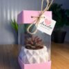 (PA1)-Anneler Günü Özel Pembe Asetat Kutulu+Beton(1) Saksılı Hediyelik Sukulent