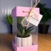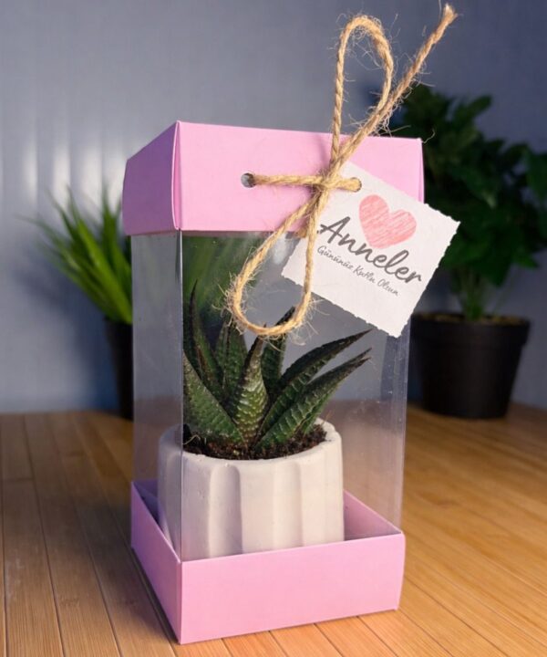 (PA3)-Anneler Günü Özel Pembe Asetat Kutulu+Beton(3) Saksılı Hediyelik Sukulent