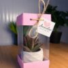 (PA4)-Anneler Günü Özel Pembe Asetat Kutulu+Beton(4) Saksılı Hediyelik Sukulent
