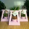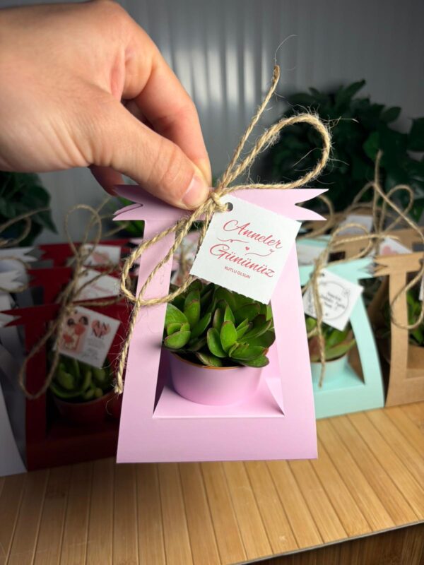 Anneler Günü Özel Kare Çanta (Pembe Renk) Süslemeli Sukulent