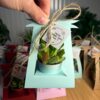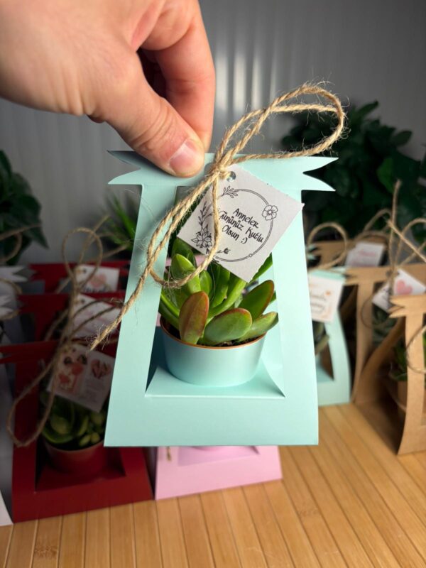 Anneler Günü Özel Kare Çanta (Yeşil Renk) Süslemeli Sukulent
