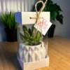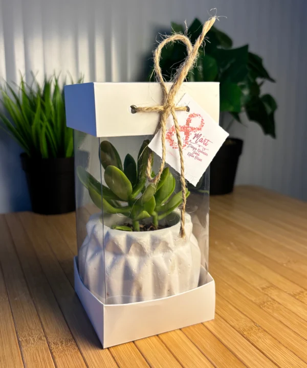 (BA1)-Kadınlar Günü Özel Beyaz Asetat Kutulu+Beton(1) Saksılı Hediyelik Sukulent