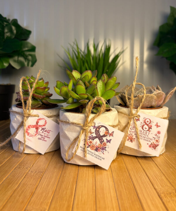 Kadınlar Günü Özel Beton(4) Saksılı Hediyelik Sukulent