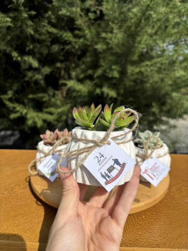 Öğretmenler Günü Özel Beton(1) Saksılı Hediyelik Sukulent